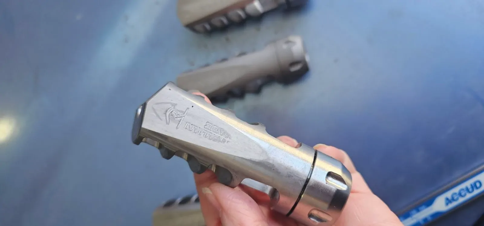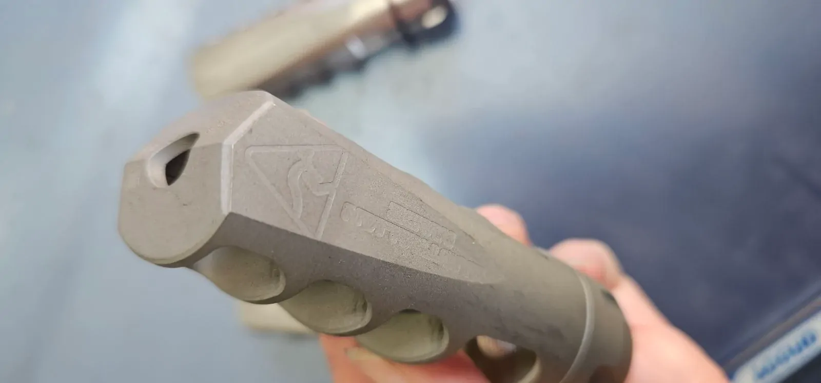 - The muzzle brake is now installed.